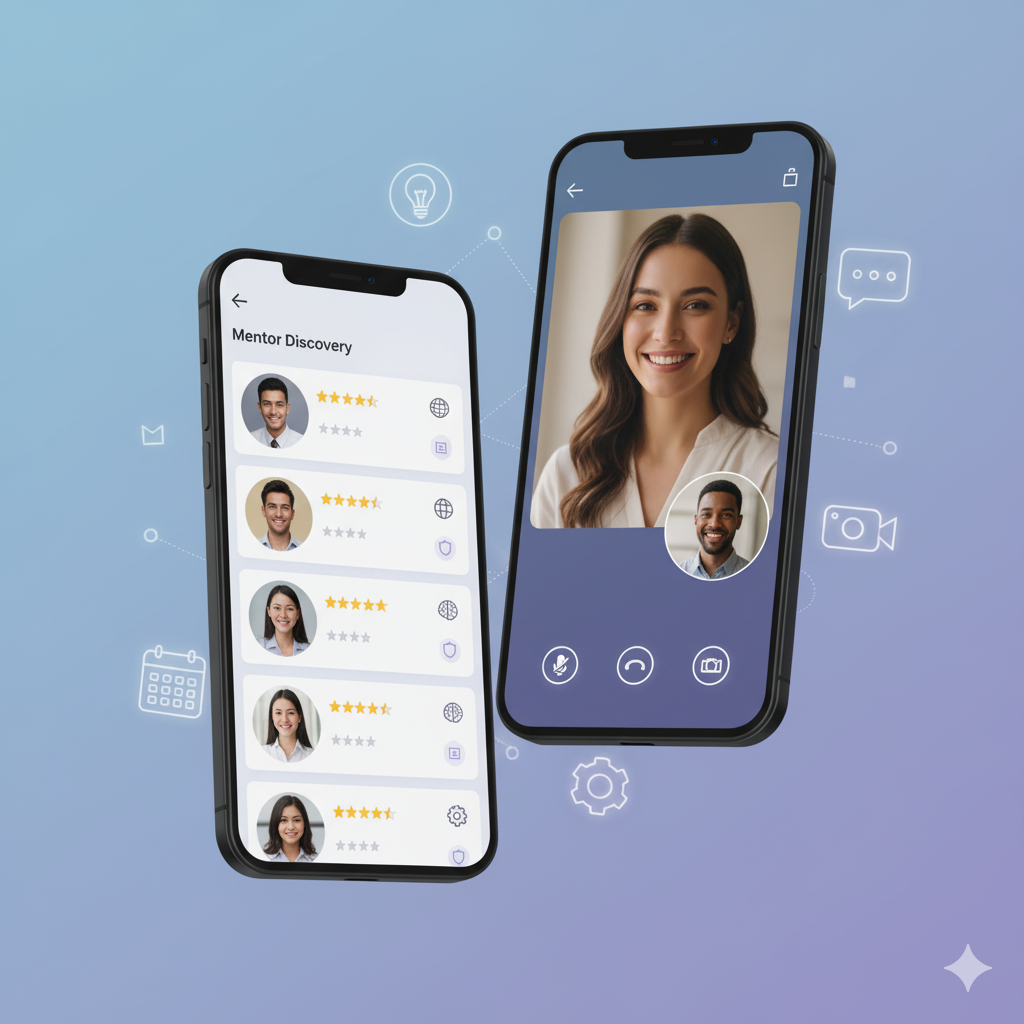 Discover mentors, browse profiles, and book sessions—secure login with OTP, profile management, and role-based views for mentees/mentors. In-app 1:1 chat and voice/video calling with push notifications and calendar reminders keeps sessions on track. Clean, mobile-first Android UX organizes discovery, scheduling, and communication for a smooth mentoring experience.