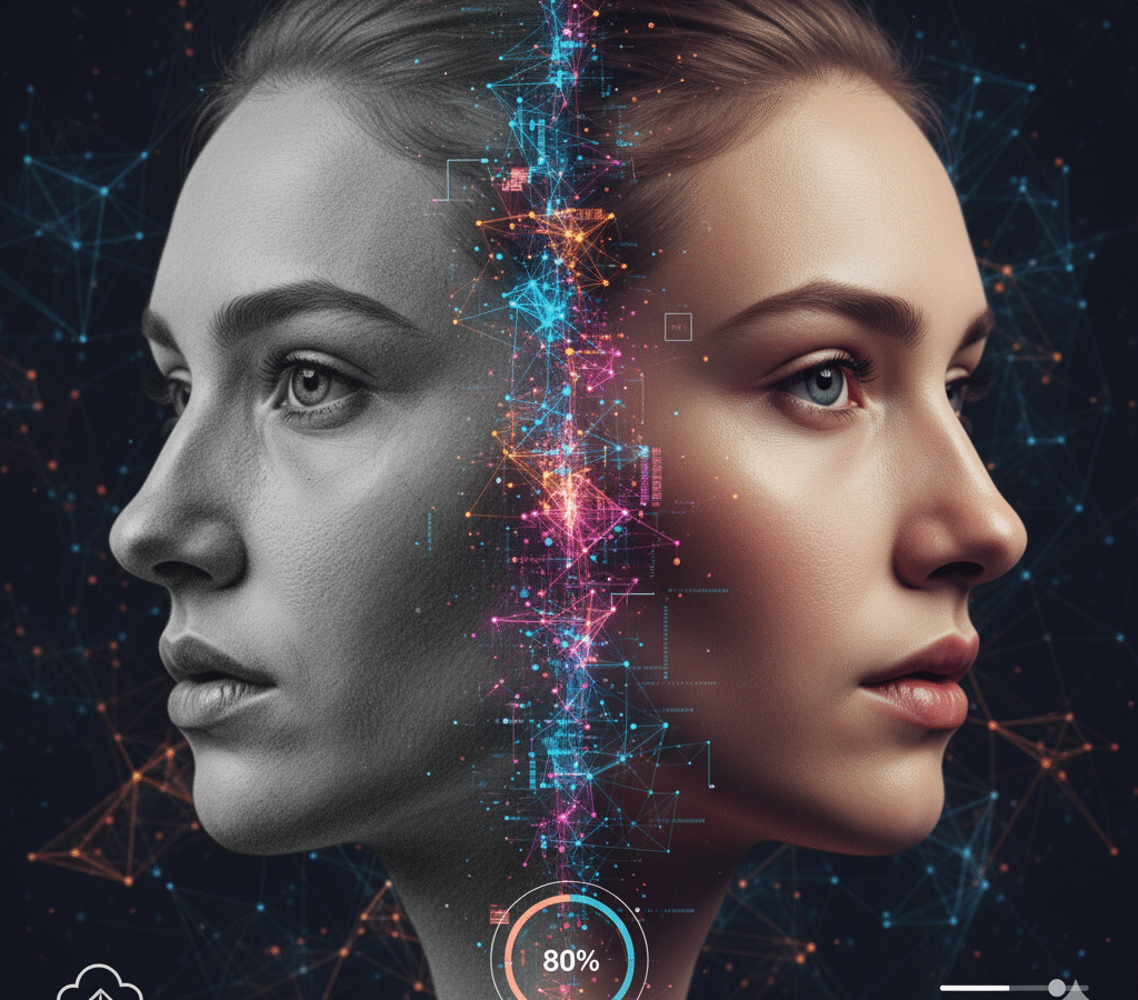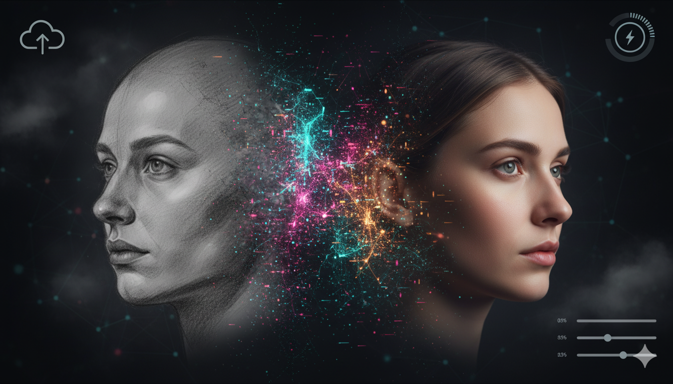 Sketch2Face turns rough facial sketches into photorealistic portraits through a two-stage pipeline. First, a Pix2PixHD conditional GAN maps the line drawing to a clean 256×256 base face. Then Stable Diffusion (img2img/x4 upscaler) enhances resolution and realism while preserving the sketch’s geometry, with optional prompt-based edits (hair, lighting, accessories). The web app pairs a React front end with a Python/PyTorch API (CUDA, mixed precision) packaged in Docker; users upload a sketch, add an optional prompt, and receive a refined image in one flow. Training uses the “Person Face Sketches” dataset with augmentation, checkpoints, and monitoring, and the system includes safety filters/watermarking. Designed for concept art, education, and rapid prototyping—not identity recreation.